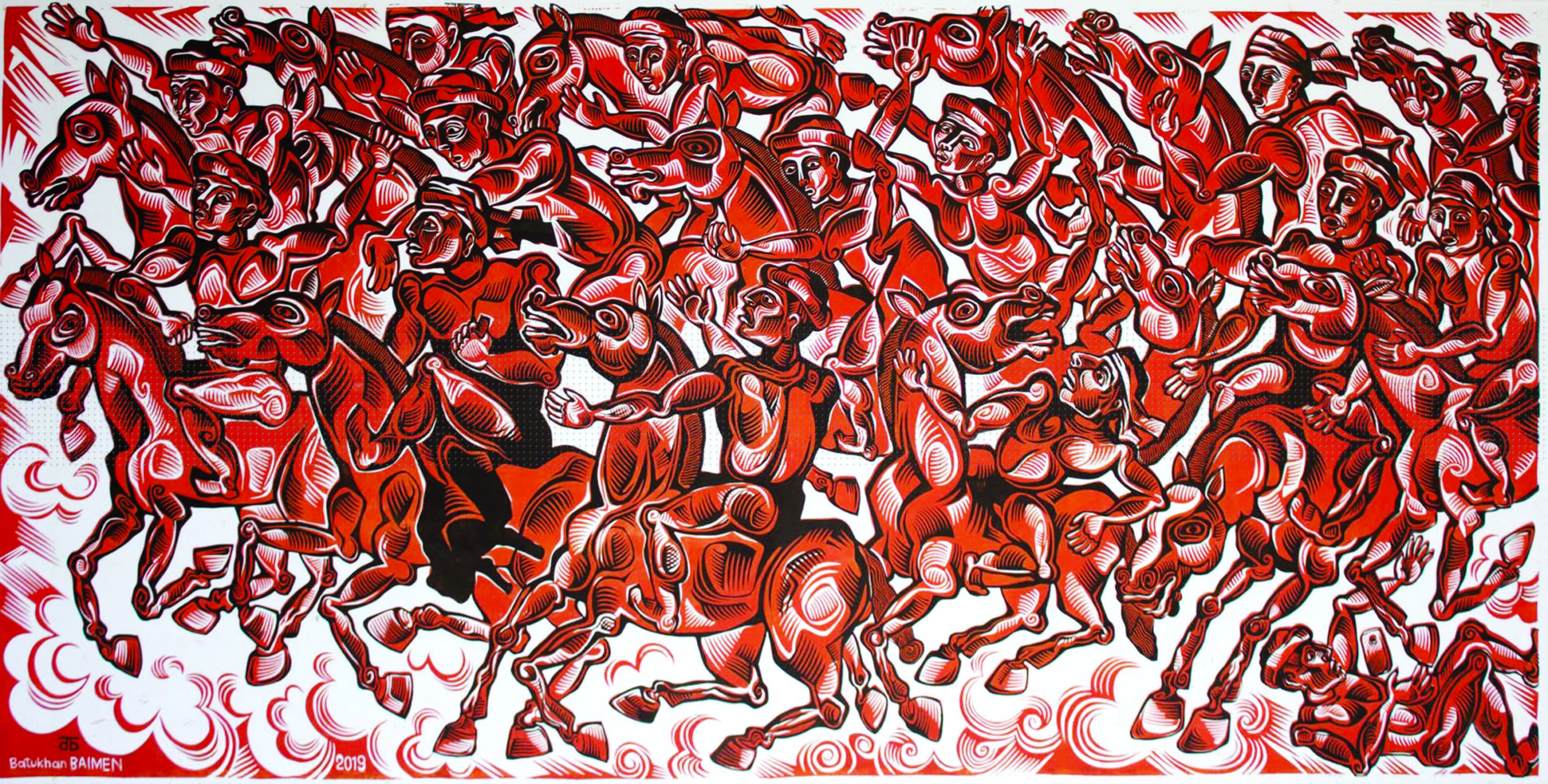 Себебі, Батухан аға гравюраны 3-8 метрлік форматтағы линолеумда ояды. Өлшемі үлкен гравюраға «компановка» жасап қана қоймай, оның ішіне ойды кіргізу деген оңай шаруа емес. Әрбір деталь мағына беріп, белгілі бір ойды баяндап тұру керек. Ерекшелігі де осында.